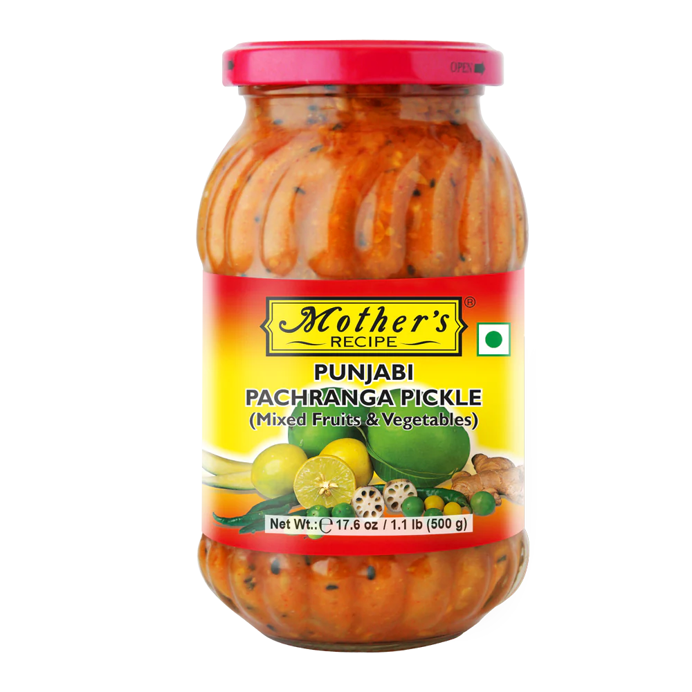 Indulge in the rich, bold taste of Mother’s Punjabi Pachranga Pickle, a five-vegetable mix inspired by the traditional recipes of Punjab. This pickle blends mango, lime, green chili, ginger, and lotus stem with a robust spice mix and mustard oil, creating a symphony of textures and flavors. Every spoonful brings a tangy, spicy burst that transforms even the simplest meals.